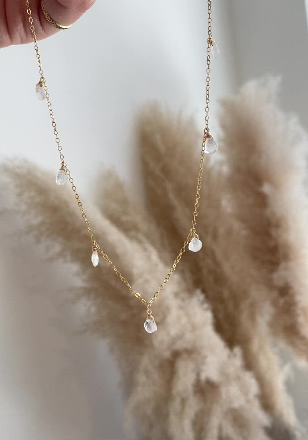 Gold filled is used for our all findings that touches the skin to ensure your piece lasts for years in its original splendor.