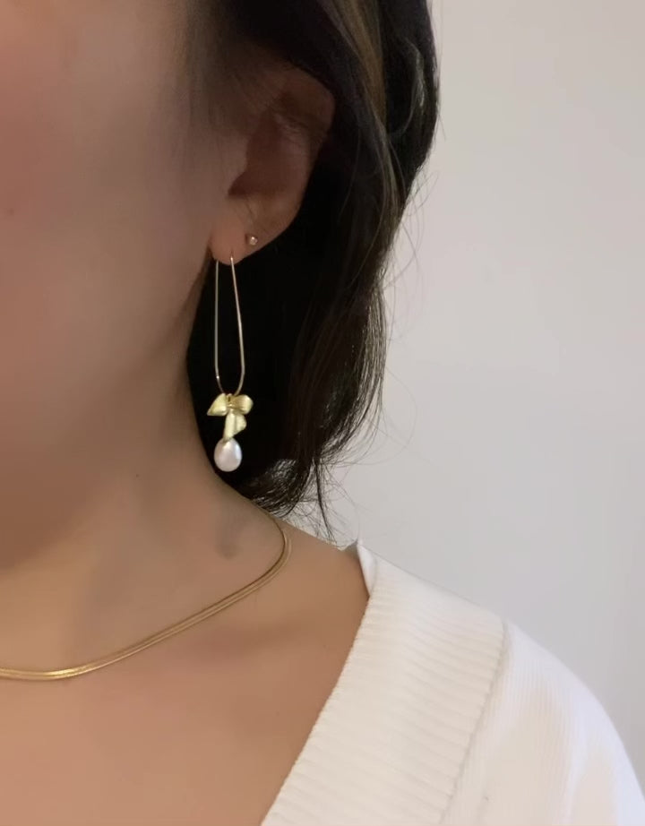 Floral pearl U hoop earrings
